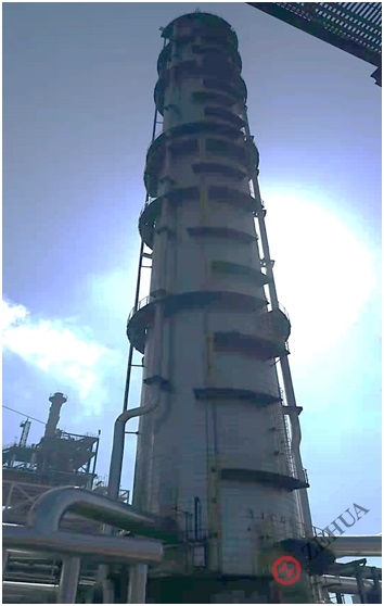 近日,北京泽华负责的东华能源宁波PDH二期装置丙烯塔改造成功,成为泽华数百个丙烷-丙烯分离塔业绩中的又一典型案例。该丙烯塔采用六溢流固阀塔板结构,但由于原塔板供应商的设计原因,开车后该丙烯塔效率很低,丙烯产品纯度只能达到95mol%左右,装置损失巨大。受东华能源委托,泽华对该丙烯塔实施改造。由于施工周期短,不可能对原塔板进行更换,只能在不拆除原塔板的条件下,在塔内对原设备局部进行定点改造,来实现改造目标。