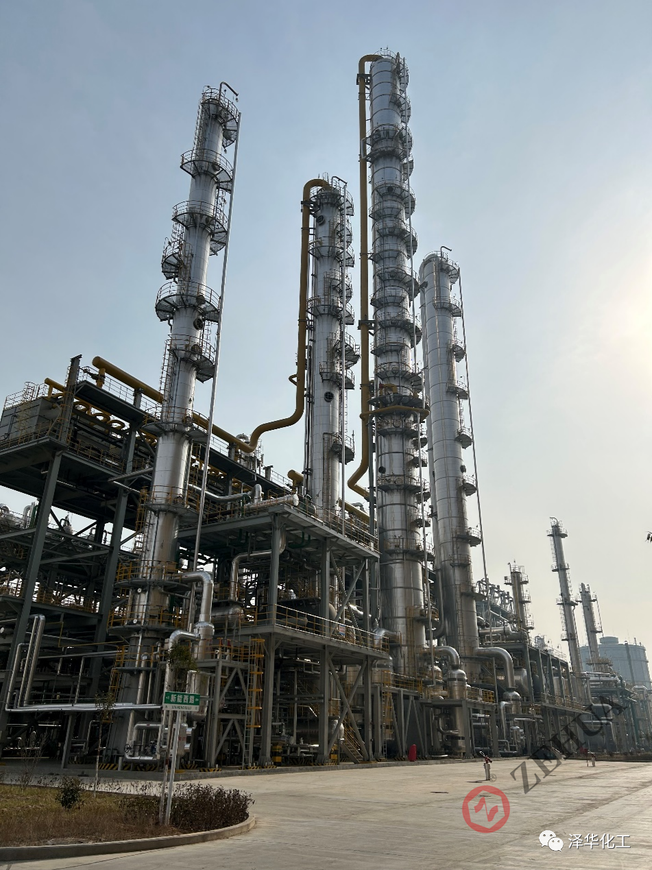 该套焦炉煤气制无水乙醇装置应用了多项国内领先技术,其中乙醇精馏装置的工艺包和塔内件均由北京泽华提供。泽华创新性采用隔壁塔+双效精馏技术,通过五塔精馏,乙醇产品纯度达到99.95%以上,副产甲醇纯度99.99%以上,同时大幅节省了乙醇精馏的蒸汽用量。