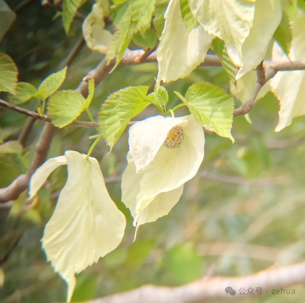 珙桐的花型非常独特,有鸽子树之称,因为花就像飞翔的白鸽——其实那不是花,而是特化的苞片,真正的花是藏在里面的小球啦。